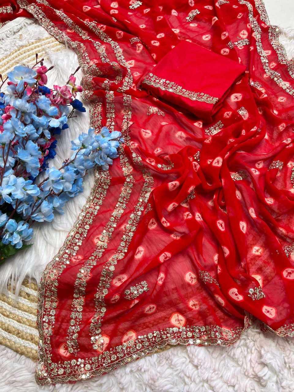 Saree Fabric: Georgette with Mill-Printed Saree Design