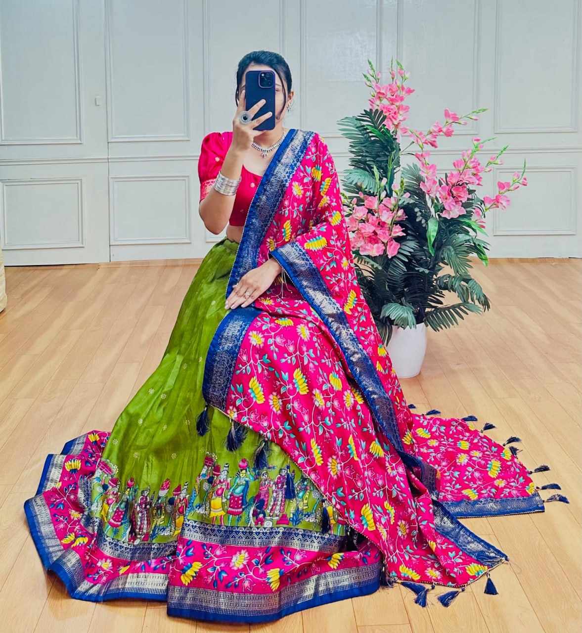 Reviews for PIYU 10-2 Silk Chaniya Choli With Viving Foil Mehndi Colour Lehnga