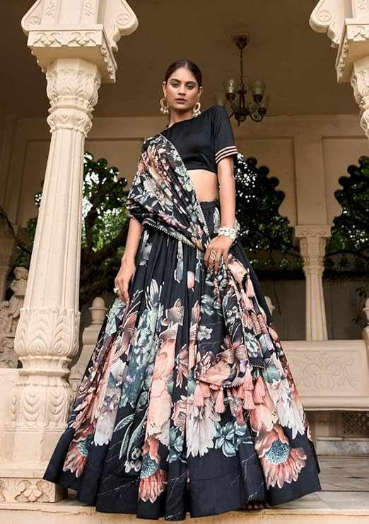 | Name : | PIYU 26-1 Silk Digital print Black Lehnga |